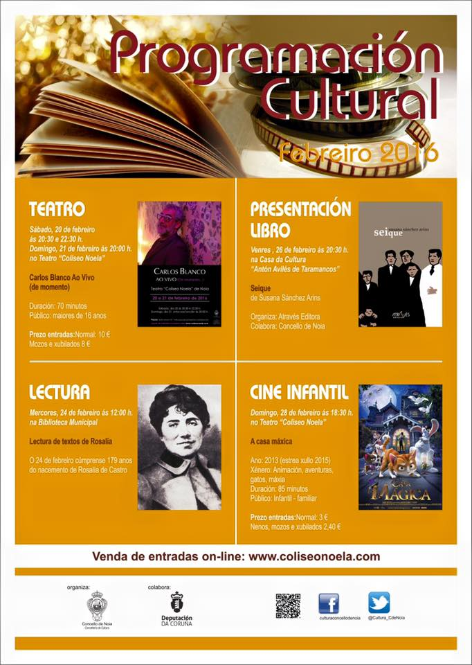 Os mostramos en A Ría da Estrela el cartel con programación cultural que ha preparado el Concello de Noia a partir del día 20.